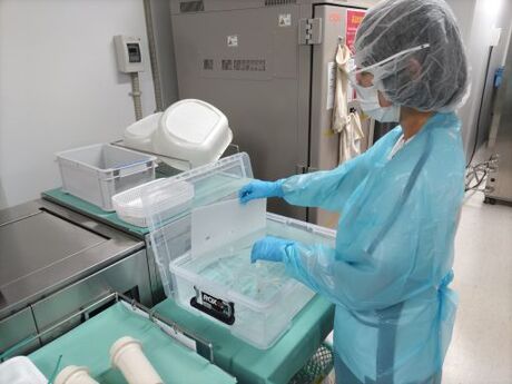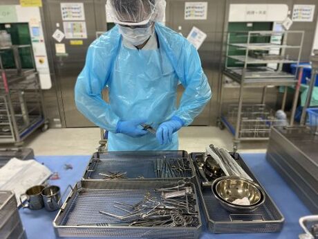医療器材を専用の機械、用手などで洗浄し分解されたものを組み立てて再度使用できるようにします。